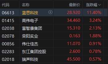 8月27日消息,港股三大指数集体上涨。截至午间收盘,恒生指数涨0.06%,报25541.43点,恒生科技指数涨0.57%,国企指数涨0.14%。盘面上,科网股跌多涨少,快手、京东、美团跌超1%,阿里巴巴、小米涨超1%;半导体板块强势大圣证券,上海复旦涨超14%;苹果概念延续涨势,蓝思科技涨超11%;应用软件概念涨幅居前,联易融科技涨超20%;创新药概念继续走弱,先声药业跌超4%。