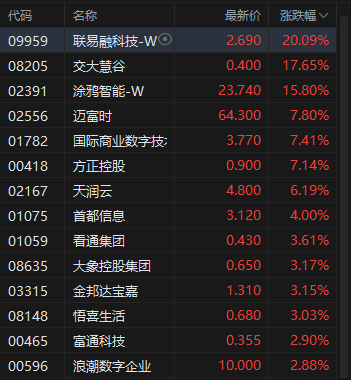 应用软件涨幅居前,联易融科技涨超20%。联易融科技发布中期业绩,主营业务收入及收益为3.75亿元,毛利为2.1亿元。公司累计供应链资产服务规模达2036亿元。公司发布公告,该公司董事会已决定行使根据公司股东于2025年6月17日通过的决议案给予董事会的一般授权项下的权力,以购回公司B类普通股,并于本公告刊发之日后12个月内使用不低于8000万美元的资金购回股份。董事会亦可能决定随市况变化而进一步动用股份购回授权。